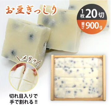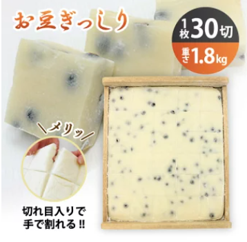 | 栄養成分 | 【杵つき豆のし1枚】エネルギー4212㎉ タンパク質160.2g 脂質19.8g 炭水化物846.0g 食塩相当量18.0g |